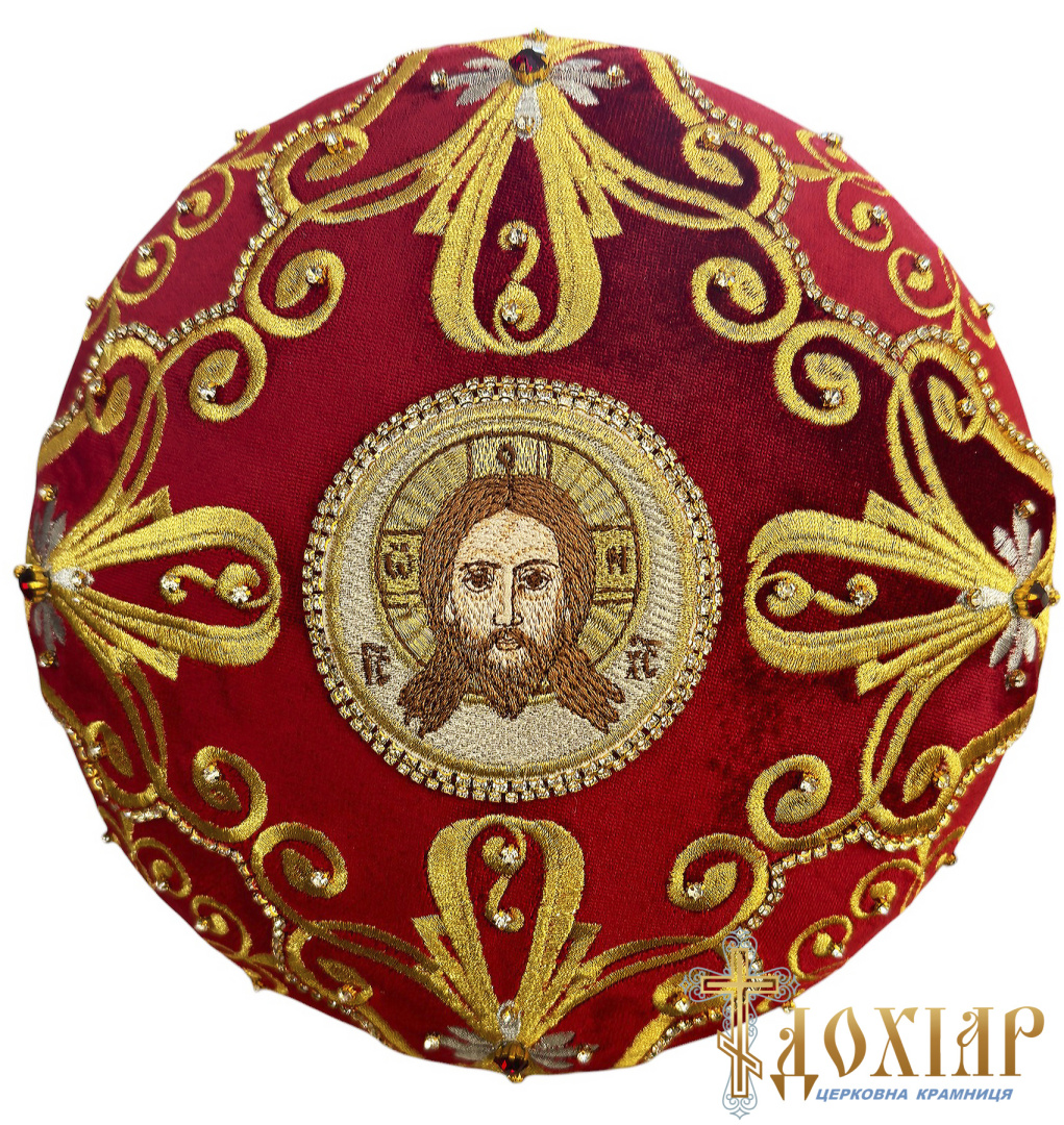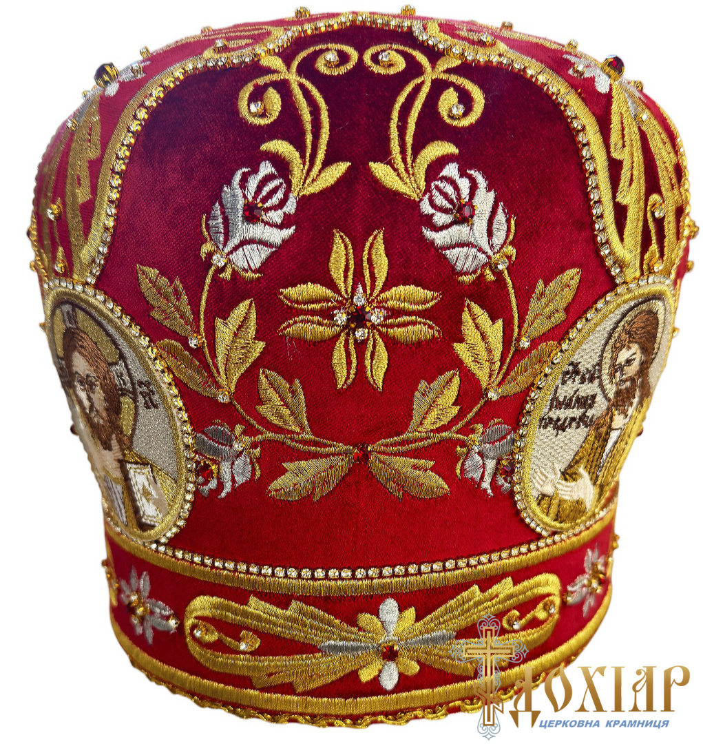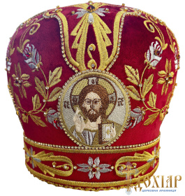 Митра, вышитая на бархате высококачественными нитями (машинная вышивка)