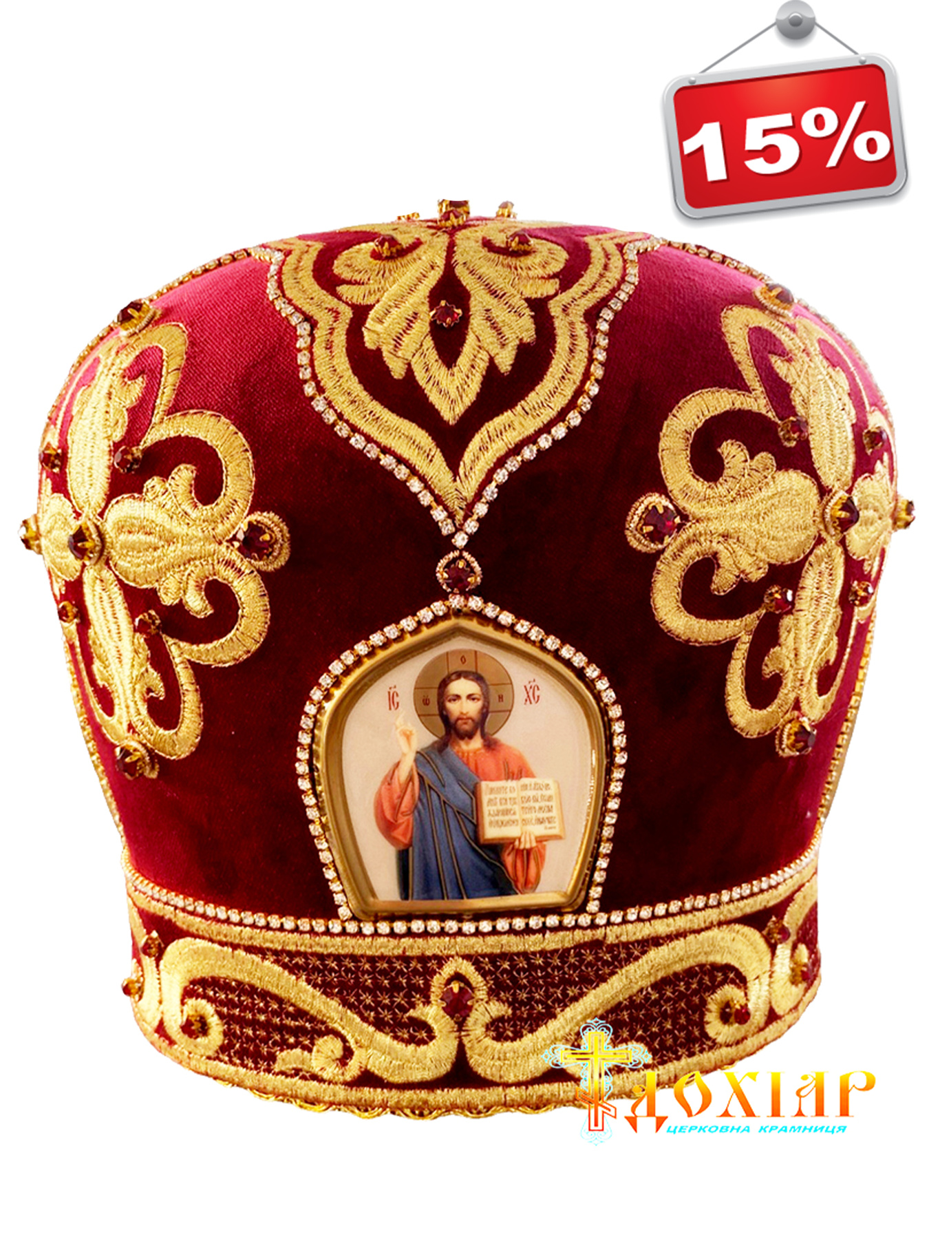 Митра, вышитая на бархате высококачественными нитями (машинная вышивка)