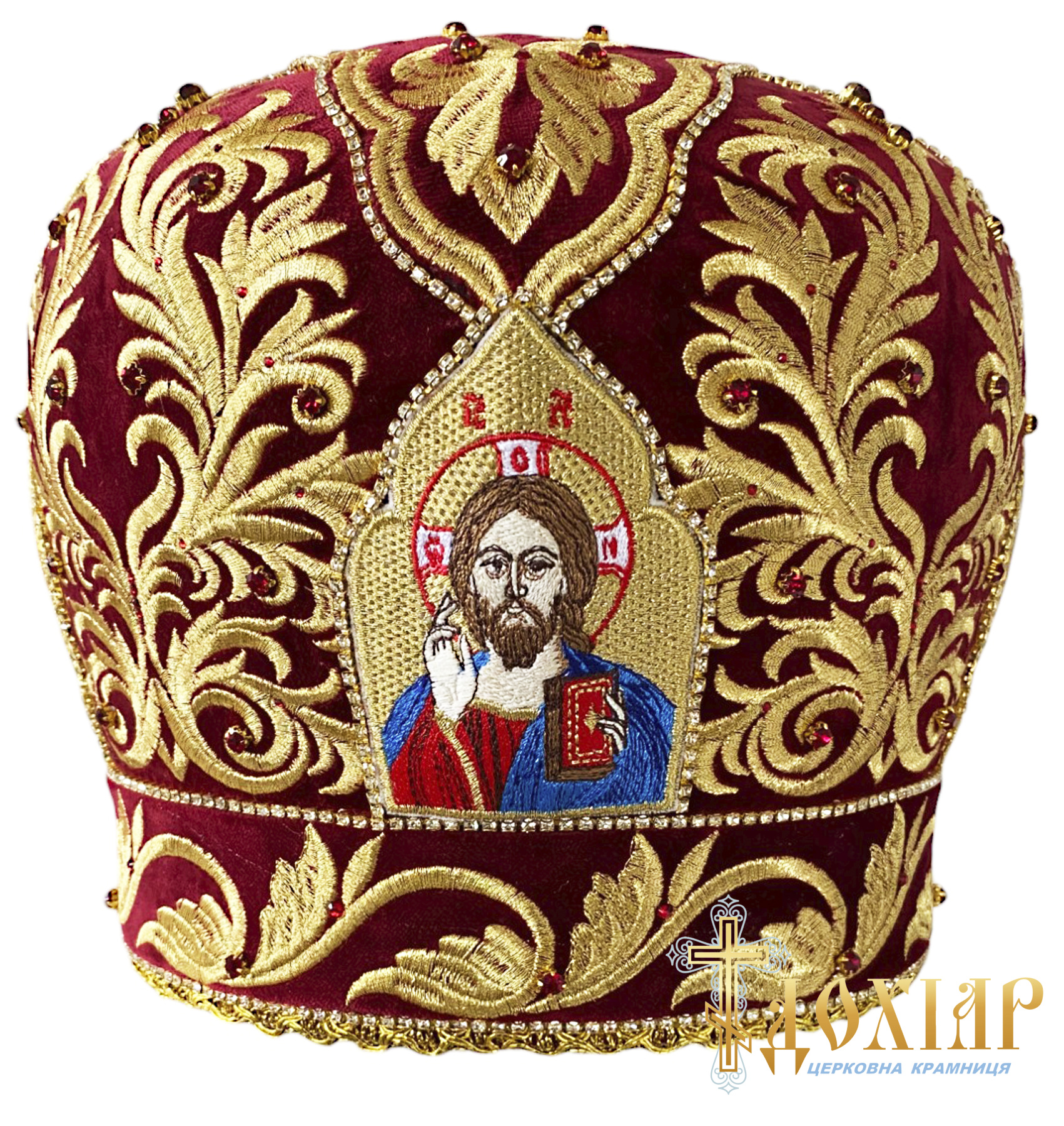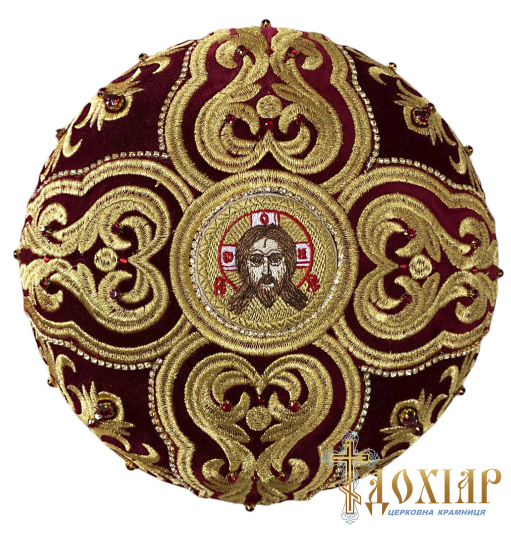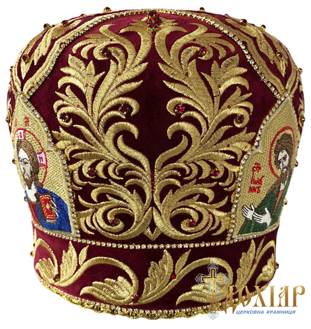 Митра, вышитая на бархате высококачественными нитями (машинная вышивка)