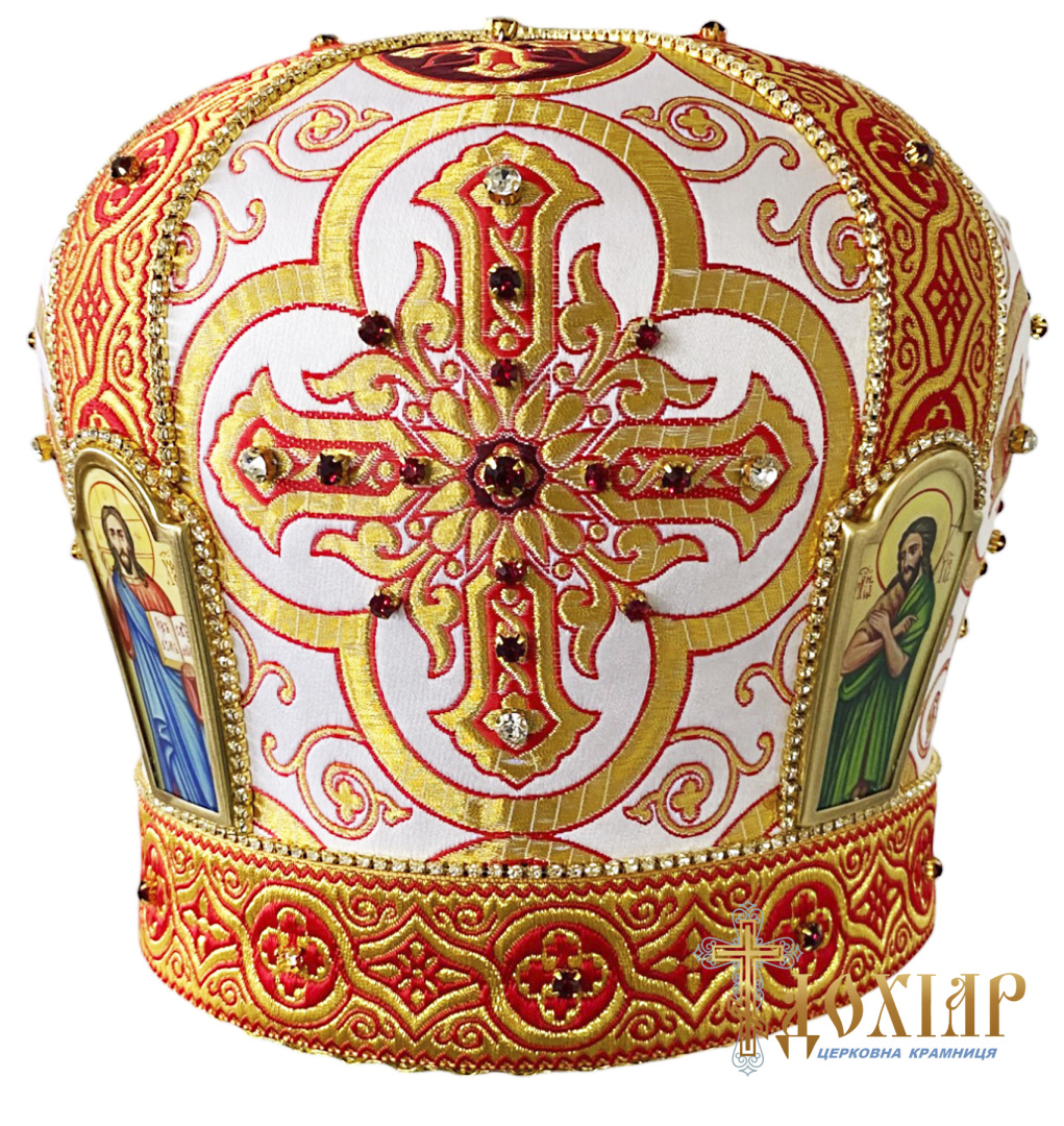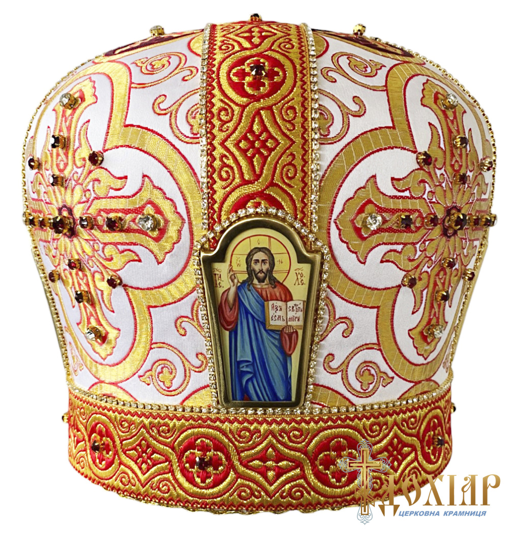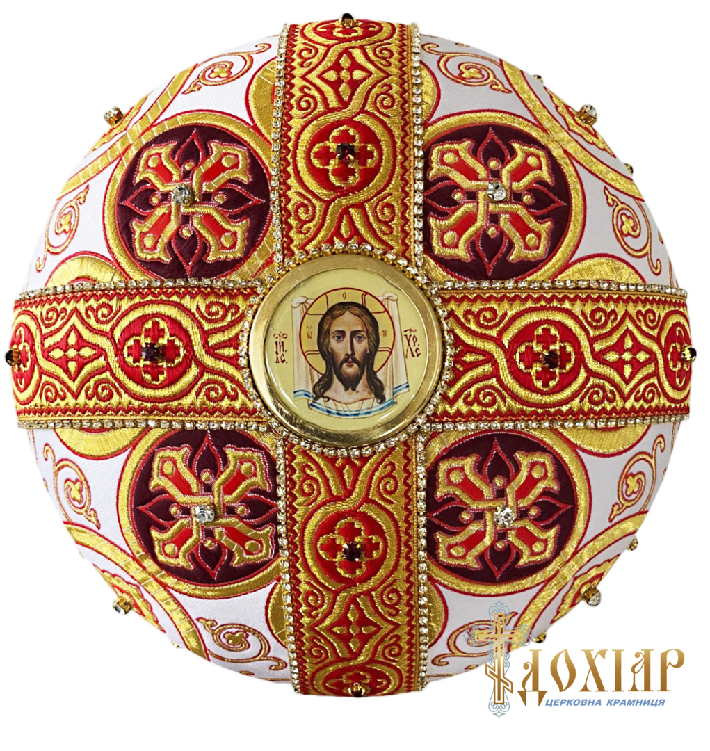 Митра парча Греция (белый из бордо, иверский крест) 58р