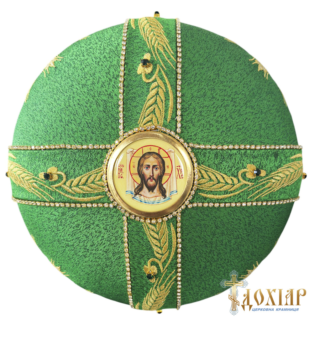Митра зеленая парча Т (вышивка) КОЛОСКИ 57,5р