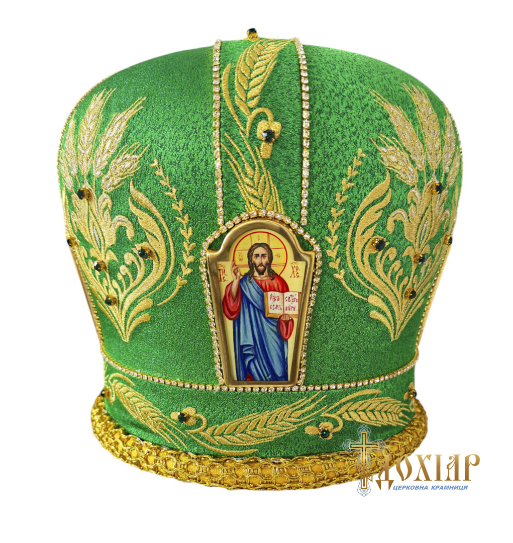 Митра, вышитая на парче высококачественными нитями (машинная вышивка)
