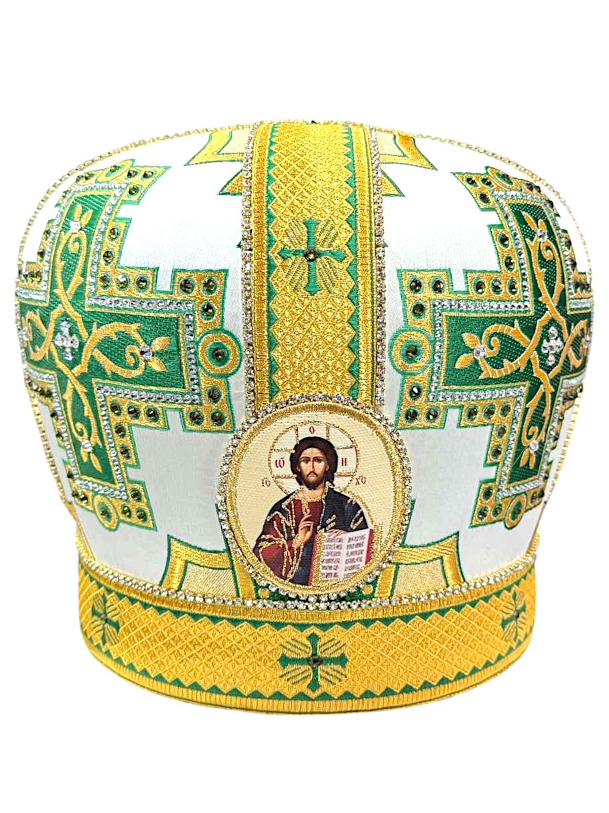 Митра парча (зеленый с золотом, иконы холст) 59,5р