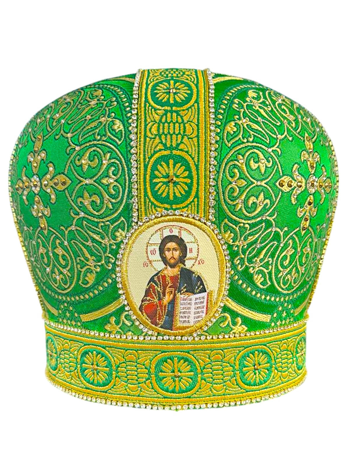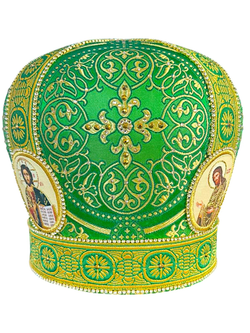 Митра парча (зеленый с золотом, иконы холст) 58р