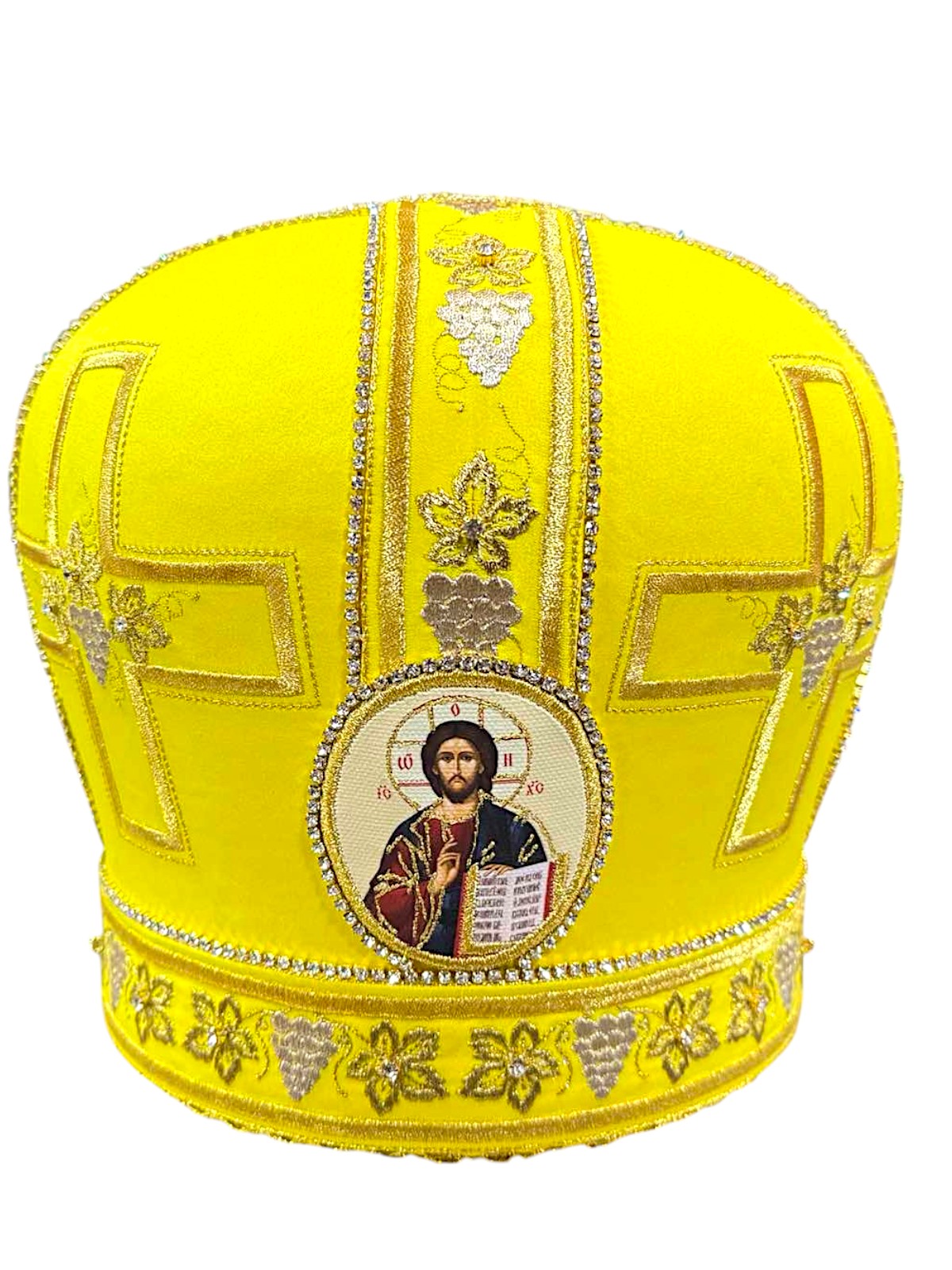 Митра, вышитая на атласе высококачественными нитями (машинная вышивка)